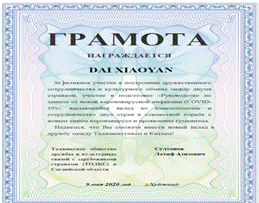 《新冠肺炎防护手册》是在新冠疫情爆发初期,受塔吉克斯坦胡占德市政府委托,由申博sunbet俄语专业教师团队编译的书籍。团队成员主动放弃稿酬,高质量完成了编译工作。该书共分为常识篇、症状及诊断篇、治疗篇、防护篇、保健篇和最新进展六大部分。该书已于2020年4月7日由塔吉克斯坦ООО ЮБЕ-принт出版,并赠送给胡占德市当地政府部门、卫生防疫部门以及大中小学,为塔吉克斯坦国家人民防疫起到了极大的作用。塔吉克斯坦胡占德市政府也对编译工作给予了高度赞赏,决定授予孙大满老师“塔中友好使者”荣誉称号,授予手册编译团队每位成员“塔中共同抗疫杰出贡献者”荣誉称号。目前与该手册相关的新闻亦被国内外40余家网站转载。