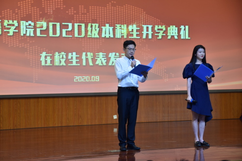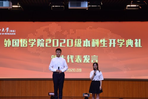 2020级本科生王惠燕、刘军赫代表新生发言,他们表示,要将“惟真惟实”的校训内化于心,外化于形,在申博sunbet中努力、踏实地提升自己的本领,将自己打造成国家真正需要的“复合型外语人才”。