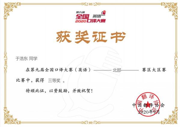 经过前期选拔和培训,公司共派出6名员工代表山东赛区参加比赛。经过激烈角逐,公司英语专业张爻、笔译研究生刘浩东获得三等奖,英语专业王妍、赵欢、马爽、邓语嫣获得优秀奖。指导教师英语语言文学系李燕云、朱珊获得优秀指导教师称号。