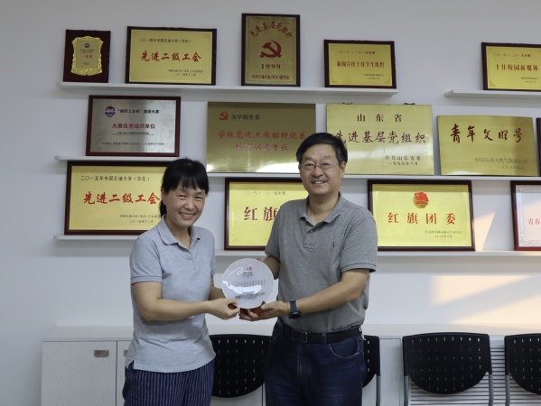公司党委书记张永宁为肖慧老师赠送纪念品