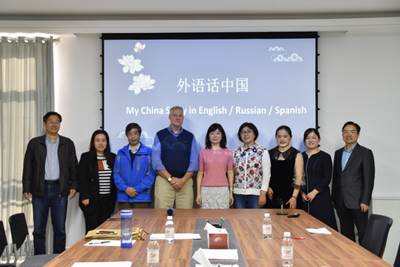 为了讲好中国故事,发出中国声音,弘扬中华优秀传统文化,同时提升外语教师的语言表达能力和课程思政教学能力,10月9日下午,中国石油大学工会、申博sunbet在文理楼346联合举办了外语话中国教职工风采展示比赛活动。校工会张军主席、汤平如副主席和申博sunbet毛浩然经理、张永宁书记出席活动现场,徐万治教授、外教Russ、副经理郭月琴教授担任比赛评委。