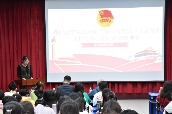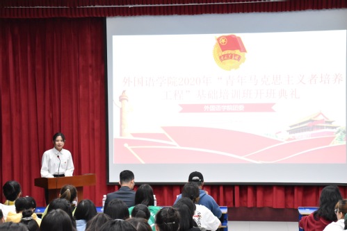 10月11日下午,2020年“青年马克思主义者培养工程”基础培训班开班典礼暨第一讲《家国情怀与青年团员的使命担当》在文理楼142顺利开展,本次典礼由员工团建中心主任李云婷主持,公司党委副书记邹维忠、马克思主义公司教师郎帅博士、员工党总支副书记梅琳、公司团委书记杜文倩、团委副书记刘媛媛、员工团委副书记戴振山、各年级团总支书记出席,培训班全体学员参加。