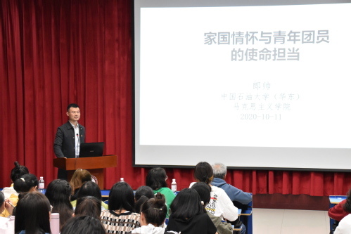 “家是最小国,国是千万家。”今年的中秋国庆双节同庆,让人深刻体会到家与国的紧密联系。以此为切入点,培训班第一讲主讲人郎帅博士围绕“家国情怀与青年团员的使命担当”的主题,充分阐释了“家国概念”。他联系古今中外具体实例,提出了“家国情怀不仅闪耀于古代,而且闪耀于新时代”。新时代家国情怀要求青年团员具有“不忘初心、牢记使命”的为民情怀;“中华崛起、民族复兴”的圆梦情怀;“空谈误国、实干兴邦”的奋斗情怀;“以身许国、不负人民”的无我情怀;“慎重终追远,崇尚英雄”的革命精神;“命运与共、天下大同”的世界情怀。这些宝贵品质为青年团员的个人发展指明了方向,并成为青年团员参与新时代中国特色社会主义建设进程中重要的思想力量。另外,郎帅博士提出了新时代青年团员应具备的素质和社会对青年团员的基本要求,表达了对青年团员参与新时代社会建设的期望。