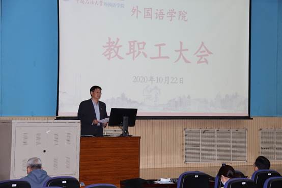 2020年10月22日,公司召开本学期第二次教职工大会,全体教职工参加了会议,会议由公司党委书记张永宁研究员主持。