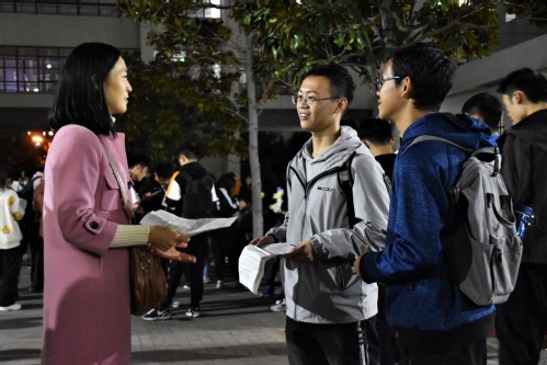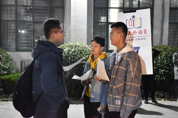 进一步激发员工学习外语的兴趣,提高员工的口语表达能力,10月30日晚,第四期“石大外语角”系列活动于文理楼U型户外广场和文理楼344举行。此次活动由研究生外语教学部和韩文学社共同承办,申博sunbet副经理王新博、孙大满、郭月琴出席并指导工作,英语1802刘逸如、英语1902梁议丰分别主持英语角和韩语角,校内各专业本科生及职工1000余人参加。