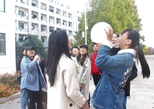 同学们正在顶气球 王艺蕊 摄