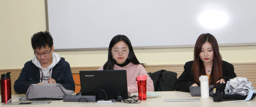 线下交流的三位研究生 刘玉倩 摄