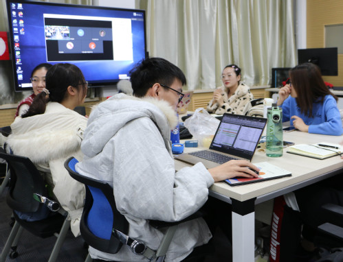 线上分享结束后,现场的三位优秀硕士研究生与学弟学妹们进行了线下交流。汉语国际教育专业硕士研究生刘小汀介绍了本专业的优势和就业前景,解答了员工们所关心的备考注意事项问题。李梦婷与徐玲玲则分别介绍了本校俄语学硕与翻译硕士方向的考试要求,分享了自己的备考历程以及考研心得体会,特别强调了加强积累和坚持选择的重要性。会议期间,林超老师与赵婷廷老师又对每一位优秀毕业生的分享内容进行了总结和补充。
