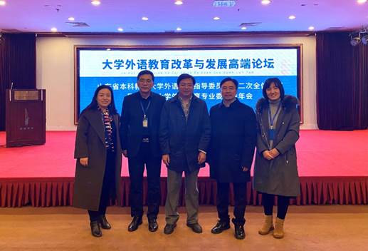 2020年12月26日,大学外语教育改革与发展高端论坛暨山东省本科教育大学外语教学指导委员会第二次全体会议在山东潍坊召开,来自全省高校的150多位公司和系部领导代表参会。会议由山东省本科教育大学外语教学指导委员会主办,潍坊公司申博sunbet承办,公司申博sunbet经理毛浩然教授受邀做大会主旨发言。山东省大学外语教指委委员郭月琴教授、学术英语系副主任赵春霞副教授一起参会。