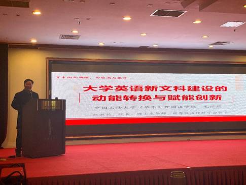 在此次会议上,毛浩然教授做了题为“大学英语新文科建设的动能转换与赋能创新”的主旨发言,发言内容围绕大学英语生存发展的四面楚歌、新文科建设的核心理念与路径、大学英语教学实践的动能转换、大学英语教学实践的赋能创新以及大学英语教学实践的系统突围等5个方面展开,并结合公司大学英语教学改革的实践进行了深入阐述,直面问题危机,提供突围方案,预见性强,信息量大,引领赋能,发人深省,幽默风趣,深入浅出,引发与会代表强烈反响。
