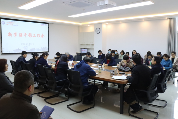 2021年2月26日,公司召开全体干部大会部署新学期工作,全体院领导及院属各单位主任、副主任、主任助理及科级干部参加会议。