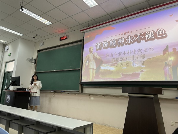 3月5日下午2点,本次活动第一环节“学习雷锋时代精神”在西环105开展。俄语专业本科生党支部崔静同学向大家介绍了雷锋同志的生平事迹、雷锋精神的时代内涵,号召在场的同学从日常生活的点滴向雷锋同志学习。作为老员工的我们,在学习专业文化知识时,要牢记不怕苦、敢钻研的雷锋精神。作为一名党员,要始终把雷锋精神的实质和核心“全心全意为人民服务”作为自己的行动指南。