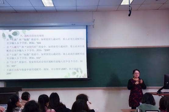 针对公司师生文献检索的实际需求,张老师着重讲解了人文社科类的数据库,尤其是与外文有关且能获取到全文的数据库,对其进行了由浅入深、条理详尽的介绍并进行应用实践操作。张老师指出:在文献检索中,检索目标越明确,检索结果就越精准。讲座的最后,张老师指出“实践出真知”,她希望师生们通过多多实践提高检索技能,通过精通一两个数据库的应用后达到“一通百通库库通”。