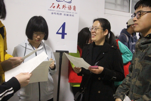 打擂环节,来自不同专业的7名选手“同台竞技”。经过激烈角逐,法学2001班李佳羽,俄语2002班滕玉洁赢得本期“擂主”,她们用流利的口语和清晰的观点赢得了比赛。“平时我们可以多看美剧练习口语,既增加词汇量,又学习地道的习惯表达。最重要的是practice,practice,practice,才能做到精益求精。”李佳羽如是说。