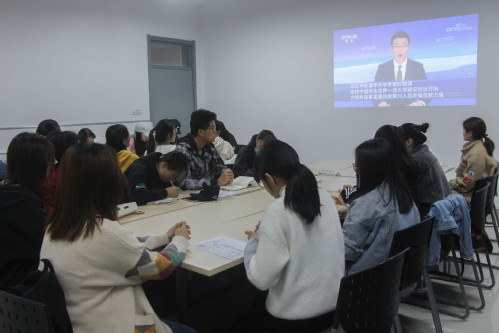 主持人播放视频,同学们更加直观地学习习近平总书记的讲话精神。视频播放完毕后,主持人带领同学学习习近平总书记讲话精神。同学们结合习近平总书记重要讲话、相关报道和评论员文章进行了探讨,大家纷纷表达自己的感悟。