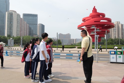 “五四广场因五四运动而得名,五四运动中的青年们勇于探索、敢于创新……”讲解员口中,一个个革命人物鲜活生动。孩子们围着讲解员,侧耳倾听那些英雄青年们誓死保家卫国的故事。王云霄说:“之前在课本上学到过‘五四’运动,但实地来到这里,就仿佛和那些革命先烈们进行一场面对面的交谈。”