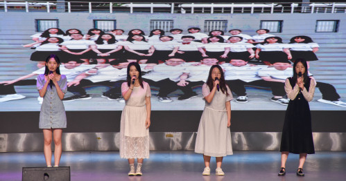 一曲《Sparkle》以感谢相遇,相遇让人感动,相遇之后我们是彼此的光,无论前路有什么来阻挡,只要怀抱微光,就能一路乘风破浪,散发万丈光芒。公司原声代组合用阿卡贝拉的形式唱响对外院毕业生学子的祝福。
