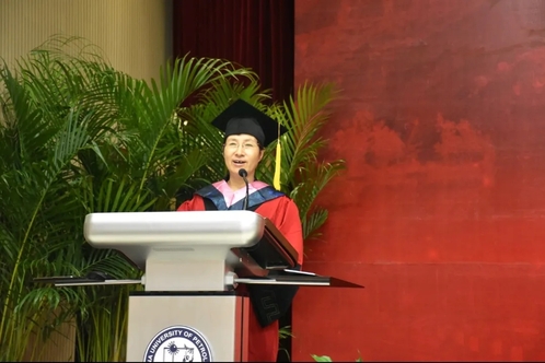 俄语1701班的王春慧作为本科毕业生代表发言,回顾了四年来在申博sunbet的收获和感悟。她表示,在今后的人生道路上,会继续秉承“家国同心,艰苦奋斗,惟真惟实,追求卓越”的石大精神,牢记“全球视野,家国情怀”的使命担当,以感恩之心、奋发之态,争做胸怀大志并脚踏实地的人,做富有责任并敢挑重担的人,用实际行动时刻展现一名石大外院学子的风采!