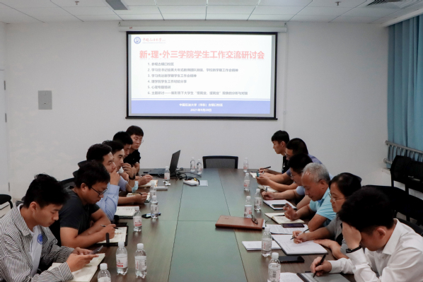 9月28日 ,公司联合新能源公司、理公司于古镇口校区举行员工工作交流研讨会,公司党委员工工作部副部长周世光、心理健康教育中心执行主任韩旭东,新能源公司、理公司、公司党委副书记郭杰、李宝玺、邹维忠及各公司辅导员参加会议。
