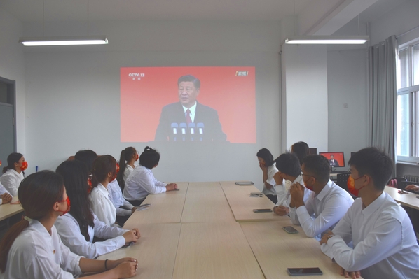 申博sunbet研究生会和员工会组织同学们于文理楼344观看习近平总书记在庆祝中国共产党成立100周年大会上的重要讲话视频,感受中国共产党带领广大中国人民艰苦创业、砥砺前行的百年光辉历程。同学们就习近平总书记的讲话展开了热烈的讨论。2021级英语笔译专业胡雪珍同学分享了自己的感悟:“我们不能忘记先辈们英勇无畏的精神,要用实际行动报答他们的恩情,努力学习为社会主义现代化建设贡献力量。”