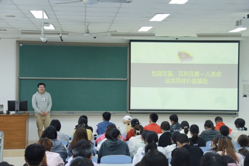 “青山一道同云雨,明月何曾是两乡。没有人是一座孤岛,在全球化的今天,世界各国的联系更加紧密。”以当代世界形势为切入点,徐越围绕“人类命运共同体”主题,从“构建人类命运共同体的历史必然、价值基础和科学内涵”三个角度深刻阐释了构建人类命运共同体的深层意义。