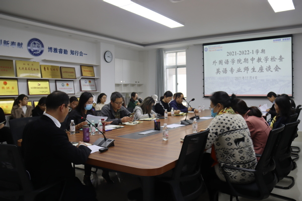 11月4日下午,申博sunbet于文理楼346举行2021-2022-1学期期中检查师生座谈会。会议由申博sunbet副经理张建科副教授主持,申博sunbet各系部负责人、骨干教师、辅导员、教学秘书参加。此次座谈,公司采取了分期分批的方式,分别听取了英语专业、俄语专业、公共课及选修课员工代表的意见和反馈。