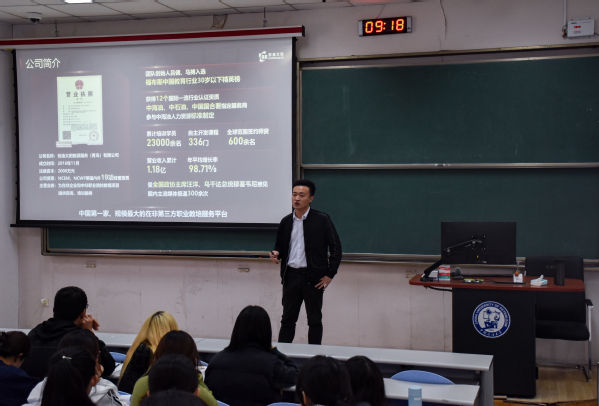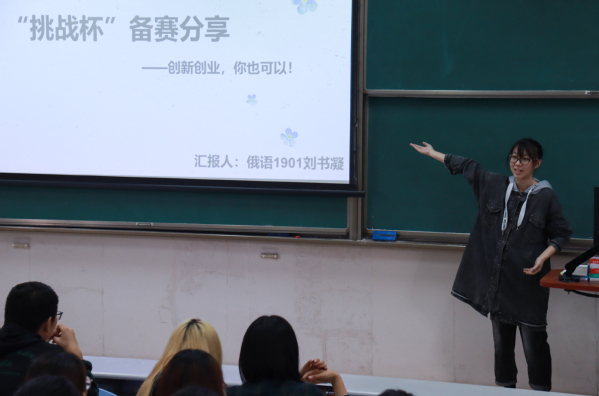 石油工程公司辅导员周家豪老师向大家分享了自己本科期间的创业项目。创造太阳能源(青岛)有限公司是中国第一家规模最大的非第三方职业教育培训服务平台。周家豪老师从团队创始、项目发展、公司运作及公司现状四方面,为大家介绍了该公司团队的创业经历。周家豪老师鼓励在座同学勇于探索、大胆创新,成为服务国家发展战略的外语人才。