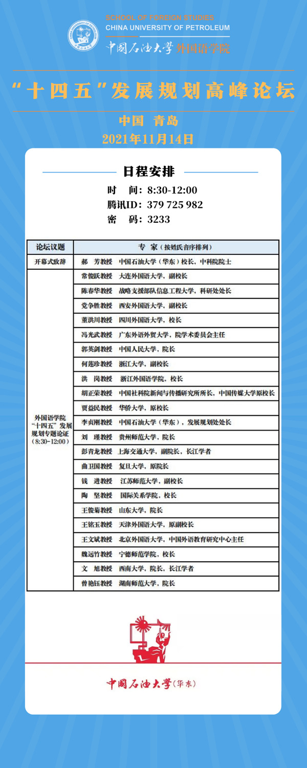 本次论坛采用线上直播形式进行,23位来自外国语言文学、新闻传播学、国际关系等多学科的领军学者分享了对“十四五”学科发展规划的探索和思考,精准点评了申博sunbet的“十四五”发展规划,并针对规划中存在的问题精准施策。在顶层设计方面,专家们强调公司的“十四五”规划应充分考虑国家战略层面对外语人才的需求,并应将公司规划融入公司整体事业的发展,服务公司人才培养、团队建设、文化建设和国际交流等各个方面。在规划撰写方面,各位专家指出应做好虚实结合、总分结合、宏观与微观结合、质性数据和量性数据结合,确保规划具有针对性、可行性、有效性、引领性和前瞻性。