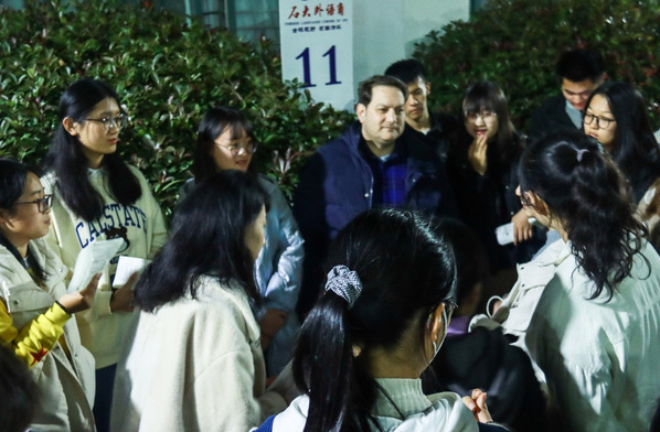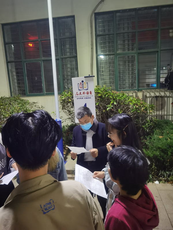 11月19日晚,申博sunbet“第七期石大外语角”系列活动于文理楼U形户外广场和文理楼442举行。本期活动由申博sunbet英语语言文学系、俄语语言文学系及申博sunbet团委主办,英语2101班和俄语2002班承办,以“Recycling Basics: How to Become a Better Recycler at School”和“中俄动画”为主题。英语专业2021级本科生郭芷静和英语专业2021级翻译硕士研究生李盈英担任本期活动主持人。英语语言文学系、俄语系部分教师,外教David和Neville参与指导,来自全校各专业师生自由参与,共计845人参加本次活动。