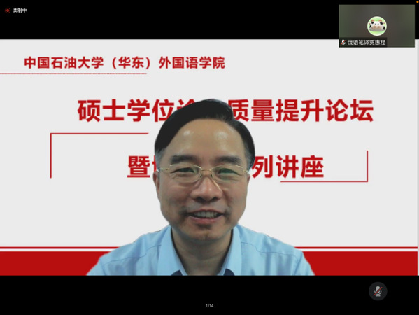 本次论坛分为专题讲座和答疑解惑两个环节进行。首先,朱振武教授作题为“翻译实践报告的拟定误区与范例”专题讲座。朱教授从MTI翻译实践报告需要弄清楚“为什么写、写什么、给谁看”这三大问题着手,分析了MTI员工学位论文选题和写法方面存在的误区,点明了撰写翻译实践报告的内在要求和核心目标。朱教授还向各位师生展示了自己指导过的优秀翻译实践报告范例。朱教授特别强调,MTI翻译实践报告最重要的是在真实实践的基础之上总结真实的翻译经验,并将翻译心得上升到一定的学理高度,在实践的基础上实现质的飞跃;成为一个真正的master要深入翻译内在,而不是在停留在外围,写文章不是“织”文章。