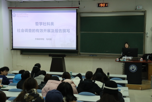 马天晨在会上分享哲学社会科学类项目的经验,分享社会调查开展以及报告撰写的相关知识。她指出,要明确社会调查在项目中的角色,以“调查+研究”的形式,形成立足现实、关怀社会的报告,以小见大,挖掘有价值的社会问题。同时,马天晨表示社会报告需要“严谨的数据支撑”、“规范的学术思维”、“美观的适度包装”,做到骨架完整、血肉丰满、有可参考价值、彰显思想深度。