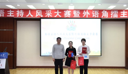 盖华文教授为英语主持人风采大赛决赛三等奖获得者颁发证书及奖品