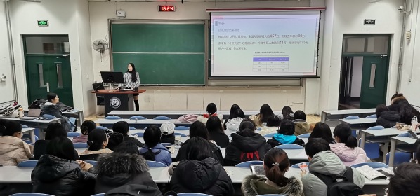 随后,李雅如从考研、就业、毕业论文、假期安排四方面进行了介绍。针对2018级刚刚结束的考研初试,李雅如为同学们详细介绍了全国考研的实际情况,告诉同学们要客观、理性看待考研,及早规划就业方向。此外,李雅如从宿舍安全、交通安全、疫情防控等方面强调了寒假期间的注意事项。