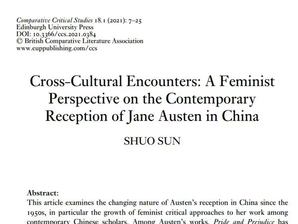 公司通用英语系青年教师孙烁博士在Comparative Critical Studies上发表2篇A&HCI研究性论文。