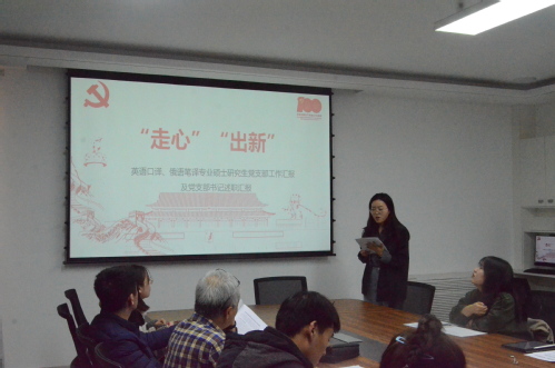 英语口译俄语笔译专业硕士研究生党支部积极开展师生共建,最大化利用“教工党支部和员工党支部共建”“院领导进支部”等公司提供的平台机会,推动本支部的党建工作,利用“语言+专业”特点,服务于中国优秀传统文化的对外宣传。