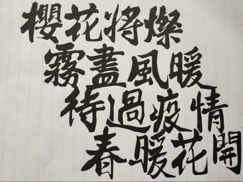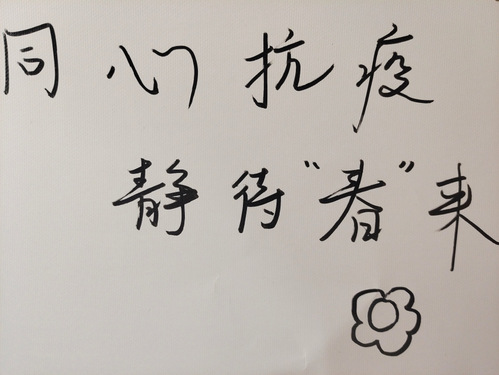没有一个冬天不会过去,没有一个春天不会到来。员工众志成城,热情高涨,全力支持公司工作,书写标语,鼓舞人心,调动更多人一起参与疫情防控工作。英语2001写道:“待过疫情,春暖花开。”英语2002写道:“同心抗疫,静待春来。”充分表达了对公司疫情防控工作的信任与支持。