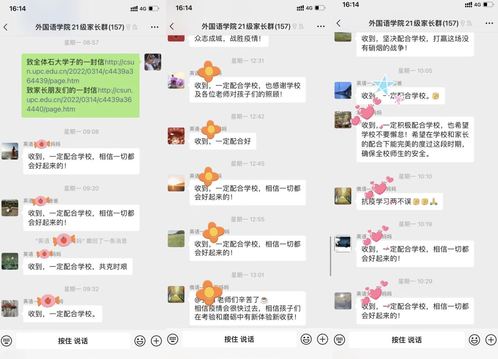 “坚决配合公司,打赢这场没有硝烟的战争!”“众志成城,配合公司,战胜疫情!”当前的疫情形势牵动着各位老师、员工和家长的心,公司下发《致全体石大学子的一封信》《致家长朋友们的的一封信》后,申博sunbet家长群里,涌现出这样一条条暖心的留言。家长们为公司疫情防控工作点赞,表示理解并将配合公司工作,同心戮力,共克时艰。