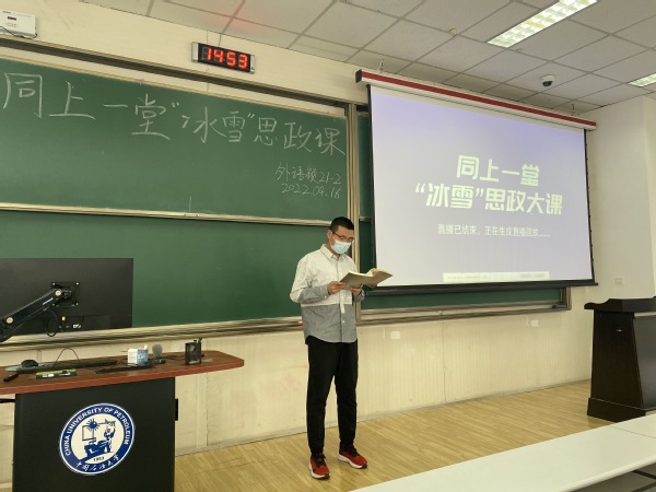 英语笔译研21-3班员工组织观看“冰雪”思政大课