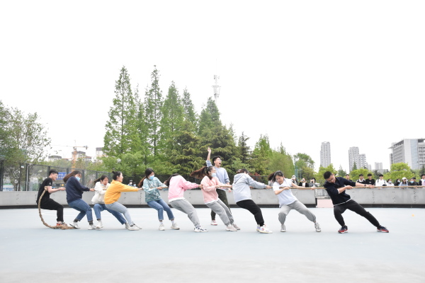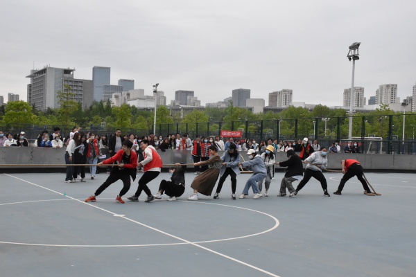 本次趣味运动会共有拔河、单人跳绳、七人八足、多人跳绳四个项目。在现场一片欢呼声和呐喊声中,比赛也正式拉开了帷幕。拔河比赛上,同学们各个跃跃欲试,轮滑场上欢呼声呐喊声不绝于耳。各队队员同时用力,“一二,一二”的口号响彻比赛场地,俄语2102取得最终的胜利,成为拔河比赛本科生组的冠军,研2101取得研究生组拔河比赛的冠军。