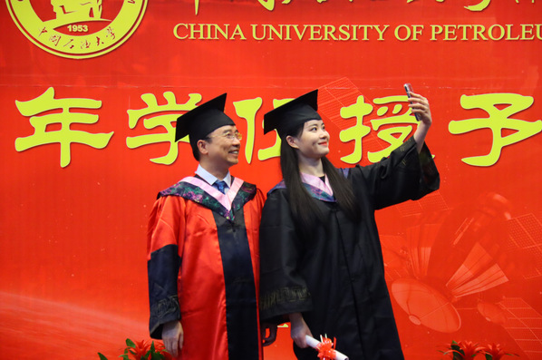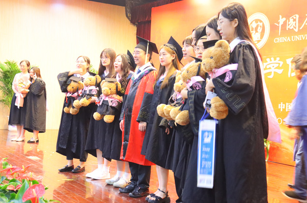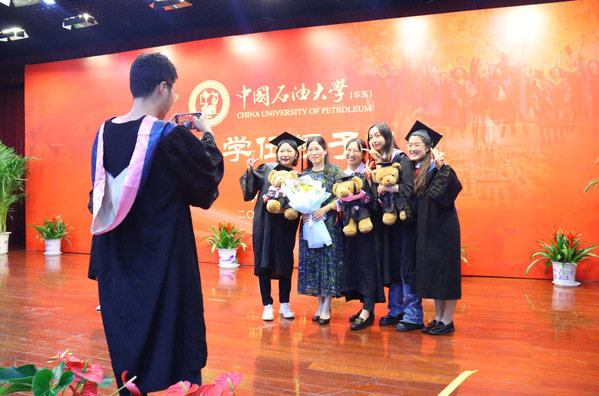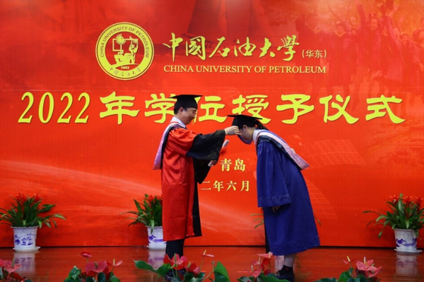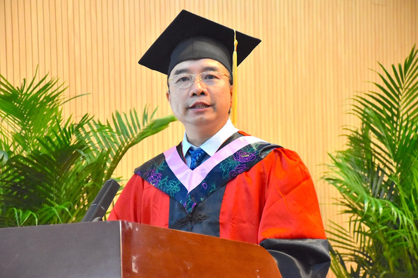毛浩然经理为毕业生拨穗正冠并颁发学位证书