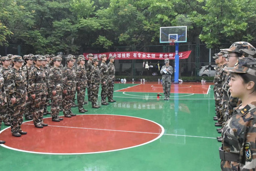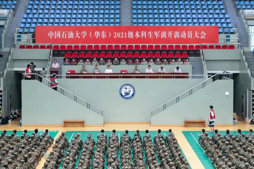 清晨,同学们接到指令,到体育馆有序就坐,参与军训动员大会。大会上,校领导和教官代表们的讲话激发了同学们参与军训的积极性。