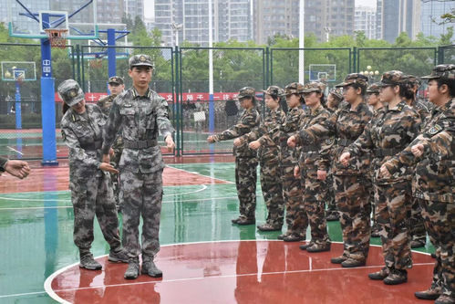 大会结束后,教官带领同学们迅速撤出体育馆,到训练场地集合,进行队列基础和齐步分节动作的训练。教官们耐心讲解了齐步行进和立定的动作规范,同学们站着整齐的军姿,认真聆听教官的指导。讲解完毕后,同学们立即开始操练,在一次又一次的反复训练后,很快掌握了齐步走的行进和立定基本要点。