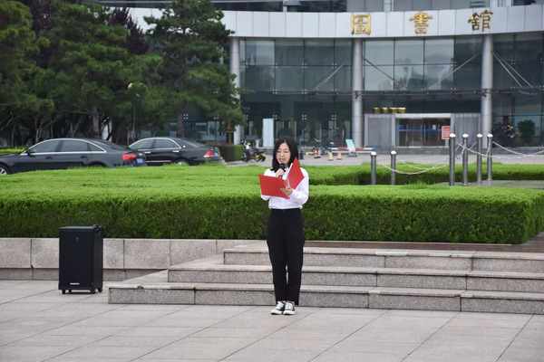 升旗仪式后,英语1902班的王彤以《百年风华正茂,强国强军有我》为主题做国旗下演讲。王彤同学呼吁广大团员青年应像革命前辈们一样心怀远大理想,弘扬以爱国主义为核心的伟大民族精神,努力学习科学文化知识,忠于国家忠于党,肩负起为祖国建设添砖加瓦,为民族复兴铺路架桥的伟大责任,争做有全球视野,家国情怀的石大外语人。