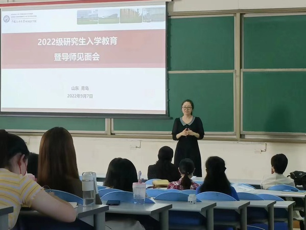 2022级硕士生导师们依次致辞。尹衍桐老师建议制定长期和短期规划,唤醒内驱力,培养战略开阔思维,摒弃固有思维,认真做好每一件事。徐文彬老师对研究生三个字进行了解读,“研究”即发现问题、分析问题、解决问题的过程;生即员工,要多读书、多思考、多实践。张英莉老师希望同学们能够做好三年的规划,让自己的每一天都过得充实而有意义。扈彩霞老师激励大家紧跟时代,虚心向学,且行且进步。张淑杰老师建议做好时间管理,认真对待每一天,成为唐岛湾畔的“伊人”。赵春霞老师希望同学们不断拓宽自己的研究领域,在导师的引导下探索出一条属于自己的道路。赵婷廷老师分享了自己的求学经历,引导新生善于选择,及时纠偏,在三年里有所思、有所为、有所爱、有所舍、有所得。赵忠会老师从企业的角度勉励大家抓紧机会打造更具竞争力的自己。杨明清老师建议同学们利用好公司资源,在学好外语的同时掌握一定的专业知识,充分利用好社会实践,为从公司向社会过渡做好准备。王新博老师寄语同学们坚守院训,强化专业定力,不负韶华不负自己。导师们引经据典,现场氛围轻松愉快,同学们受益匪浅。张建科老师从学科前沿和产出导向两个方面,提醒大家关注前沿知识,找准切入点,将知识内化于心,牢记全球视野、家国情怀,利用三年的时间打造一个全新的自己。郭月琴教授介绍了研究生国际交流的相关信息,希望同学们能够利用好公司这个平台,早日成为国家级人才。