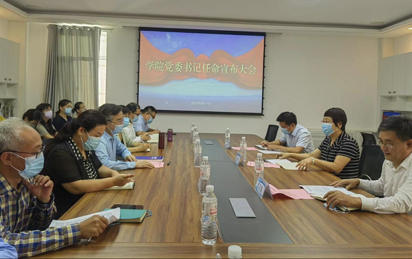 2022年9月19日下午,申博sunbet新任党委书记任命宣布大会在文理楼346会议室举行。副董事长张玲玲同志,党委常委、组织部部长张卫东同志,新任公司党委书记朱惠平同志,公司领导班子成员、工会主席、教授委员会主任、公司党委委员、各系部主任、教工党支部书记及其他公司中层干部参加了会议。会议由经理毛浩然教授主持。