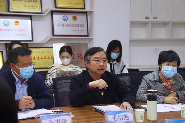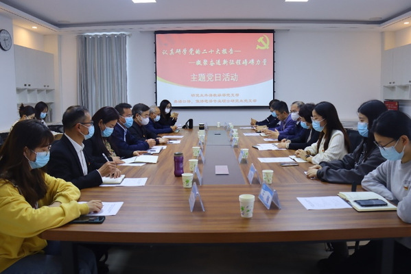 2022年10月21日,张玲玲副董事长来到申博sunbet,参加由研究生外语教学部党支部和英语口译、俄语笔译专业硕士研究生党支部联合开展的“认真研学党的二十大报告,凝聚奋进新征程磅礴力量”主题党日活动。活动由研究生外语教学部党支部副书记孙玉超主持,公司班子成员以及两个支部的党员参加了本次活动。