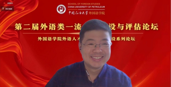 湖南大学申博sunbet原经理,教育部大学外语教学指导委员会委员刘正光教授以“课程思政、思辨能力、语言能力三位一体培养贯穿外语教材编写的实现原则和路径”为题,立足外语人才培养的时代要求,从课程思政的基本内涵出发,基于显隐双线、总分总结构化原则、主题统领等三个层面为我们展示了如何将课程思政、思辨能力、语言能力培养贯穿于外语教材的编写中。他指出,教材编写应建立宏观统领、中观统领和微观统领三个层次的逻辑关系,实现隐形教育与显性教育的有机统一,形成协同效应,以实现高质量人才培养的目标。最后,刘正光教授表示课程思政、思辨能力与语言能力培养相辅相成。将课程思政内涵的具体理解和践行方式有机融于具体教学活动与学习生活当中,才能实现立德树人的根本任务。