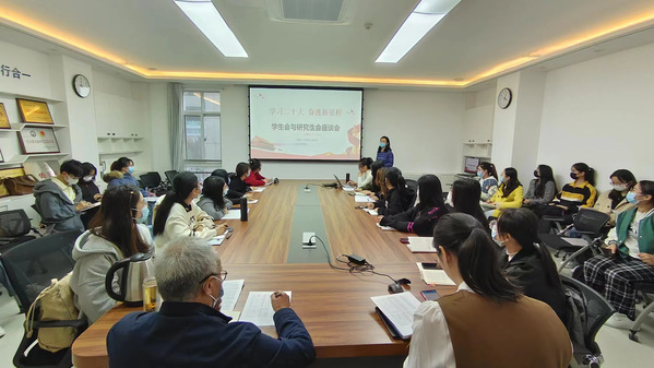 为深入学习宣传贯彻党的二十大精神,切实提高申博sunbet员工干部的员工工作能力,11月23日下午,申博sunbet于文理楼346召开以“”学习二十大 奋进新征程”为主题的员工干部专题座谈会。本次会议由申博sunbet研究生会组织部成员于潇洋主持,公司党委副书记邹维忠、团委书记相欣余、公司员工会和研究生会成员参加了本次活动。