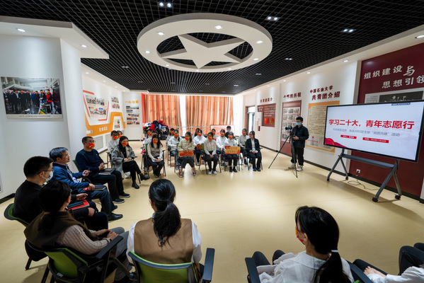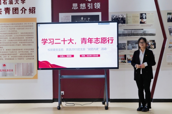 11月24日上午,为进一步学习党的二十大精神、贯彻习近平总书记在报告中明确指出的“完善志愿服务制度和工作体系”的时代要求,校团委党支部和英语2003团支部于老员工活动中心团情团史教育基地开展了以“学习二十大,青年志愿行”为主题的党团共建活动。本次活动由英语2003团支部宣传委员郭翠春主持,公司党委书记朱惠平,校团委党支部书记季林海,党支部成员姜士绅、曲晓琳、刘秋蘅、刘浩正,申博sunbet团委书记相欣余以及英语2003团支部22名成员参加了本次活动。