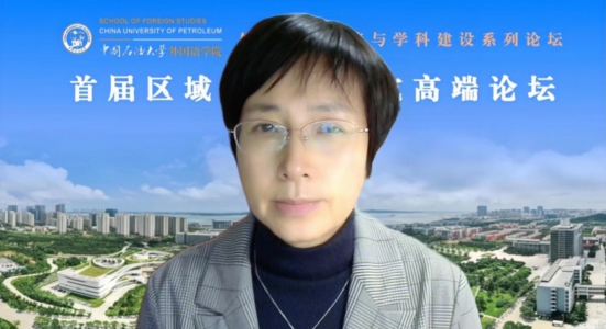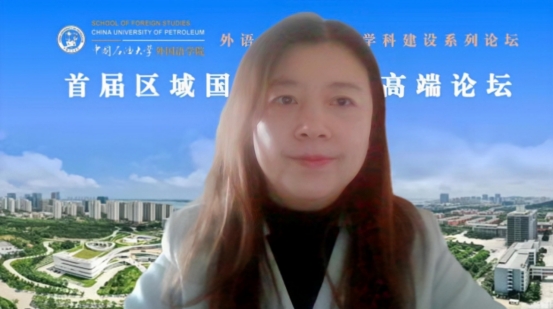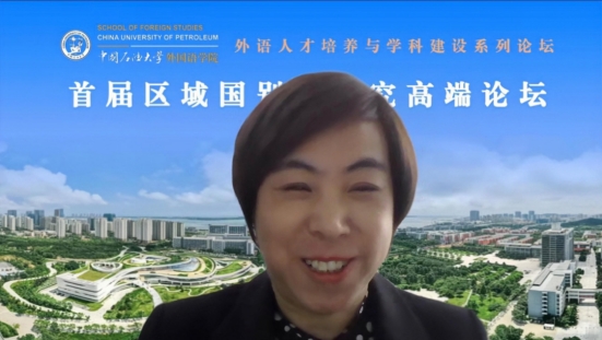 教育部高校国别和区域研究备案中心德州公司东盟研究中心执行主任、德州公司马应心教授以“应用型高校外语学科视域下的区域国别学团队建设探索”为题作主旨发言。马应心教授认为,区域与国别研究作为一个交叉学科极具前瞻性和战略性。她以《菊与刀》为例,指出外语是国别与区域研究的基础和利器,外语学科师生应当意识到语言与国别区域研究中新的学科生长点。此外,马应心教授基于包括山东省在内的国内区域国别学的发展情况,为应用型高校的区域国别学团队建设提出了极具建设性的建议。